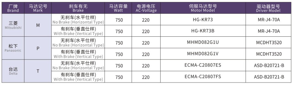 搭配伺服马达一览表