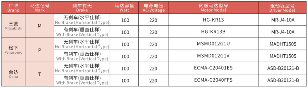 搭配伺服马达一览表